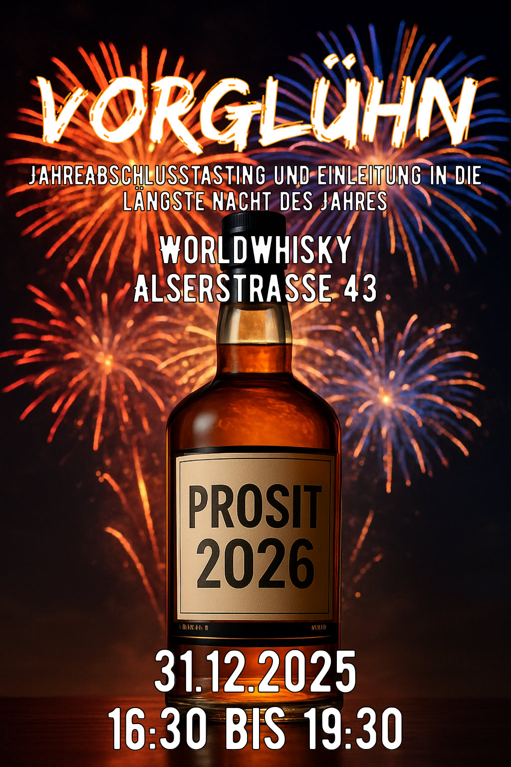Am 31.Dezember läuten wir mit Euch den Jahresabschluss ein. Zu Beginn gibt es die Wahl zwischen einem "Gin-Tonic", einem "Hot Toddy", einem "Old Fashioned" oder unserem "Virgin Rose" Whisky-Cocktail und danach können 5 Whiskies aus unserem Shop verkostet werden. Let's celebrate.